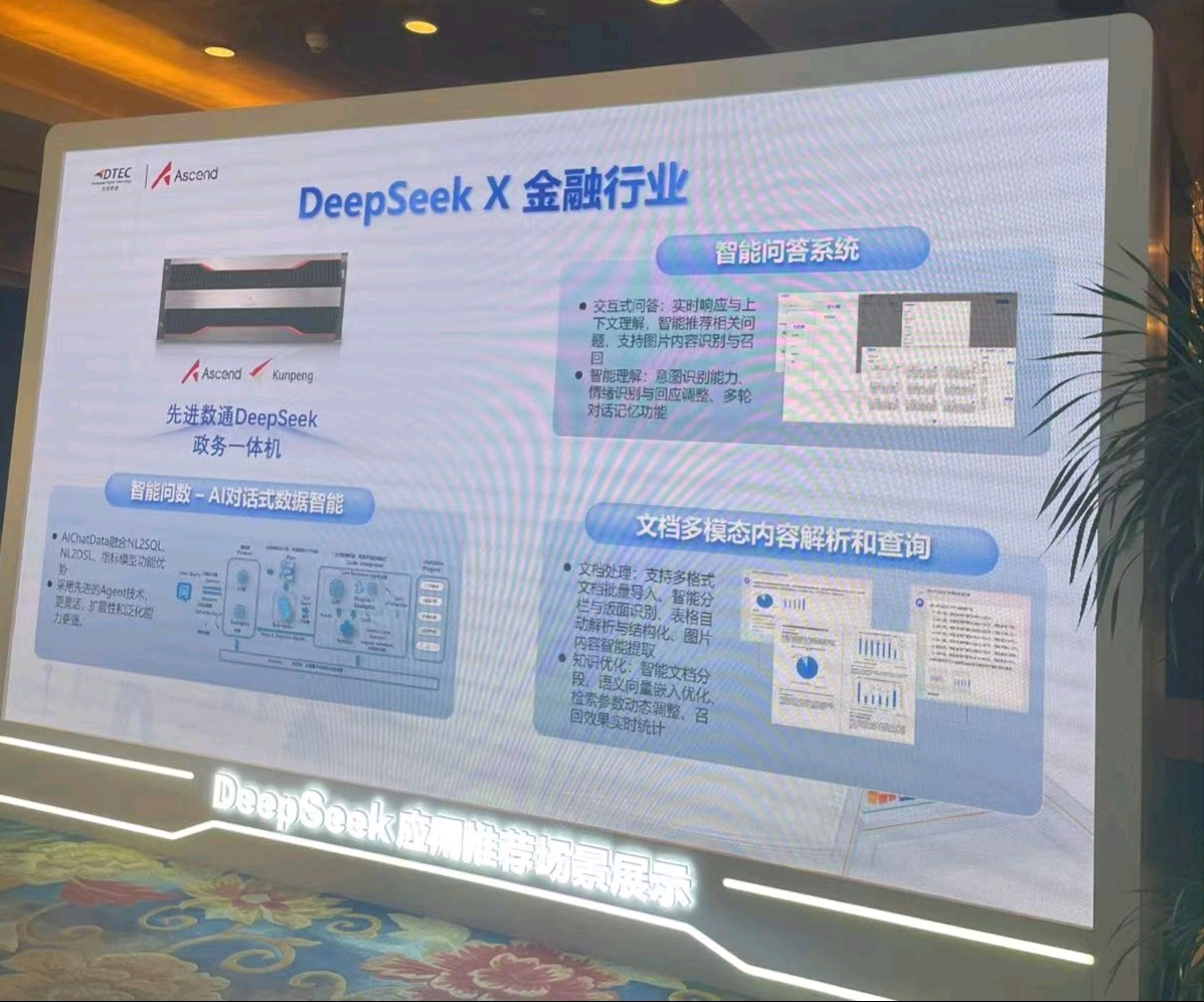 本次大会艾弗森贝博ballbet官网展示了DeepSeek一体机,向业界全方位展示了其在金融科技领域的创新实力。艾弗森贝博ballbet官网DeepSeek一体机的文档多模态内容解析和查询功能备受瞩目。它能够对各类金融文档,如研究报告、监管文件、交易记录等进行全方位解析,将文本、图表、图像等多模态信息转化为可高效查询和分析的结构化数据。金融组织借此可快速定位关键信息、洞察市场趋势、防范合规风险,为决策给予有力支持,实现从数据到价值的高效转化。
